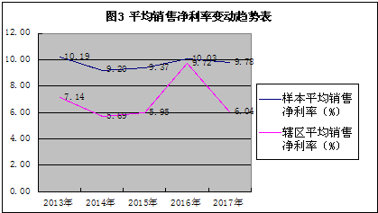 從營(yíng)收和利潤(rùn)變動(dòng)趨勢(shì)看,5年來(lái)混改公司平均營(yíng)業(yè)收入、凈利潤(rùn)變化趨勢(shì)大體呈現(xiàn)出V型,轉(zhuǎn)折點(diǎn)在2015年,調(diào)研發(fā)現(xiàn),上述趨勢(shì)變化很大程度上反映了轄區(qū)鋼鐵、煤炭等大型國(guó)企“去產(chǎn)能”供給側(cè)結(jié)構(gòu)性改革同混合所有制改革結(jié)合的效應(yīng)體現(xiàn)。2016年起營(yíng)業(yè)收入、盈利水平逐步上升,特別是2017年混改公司平均營(yíng)業(yè)收入、凈利潤(rùn)增長(zhǎng)勢(shì)頭好于轄區(qū)總體平均水平(見(jiàn)圖1、2)。這與混改公司混改時(shí)間分布(表1)大體吻合,表明混改一定程度上帶動(dòng)公司業(yè)績(jī)的上升。從盈利指標(biāo)考察,混改公司平均銷(xiāo)售凈利率在2016年達(dá)到峰值,之后呈下滑趨勢(shì),但2017年較2016年平均銷(xiāo)售凈利率下降2.74%,遠(yuǎn)低于轄區(qū)平均下降幅度(37.86%)?;旄墓緝糍Y產(chǎn)收益率變動(dòng)趨勢(shì)呈V型,2015年為折點(diǎn),2017年略有下降,下降幅度大于轄區(qū)平均。這表明混改一定程度上促進(jìn)公司銷(xiāo)售盈利水平的提高,但對(duì)投入資本盈利能力改善效果不理想。馬鋼股份、銅陵有色等大型國(guó)企通過(guò)縮短管理鏈條、引入員工持股等,在2015年的轉(zhuǎn)型中平穩(wěn)過(guò)渡,并保持了經(jīng)營(yíng)業(yè)績(jī)的持續(xù)增長(zhǎng)。