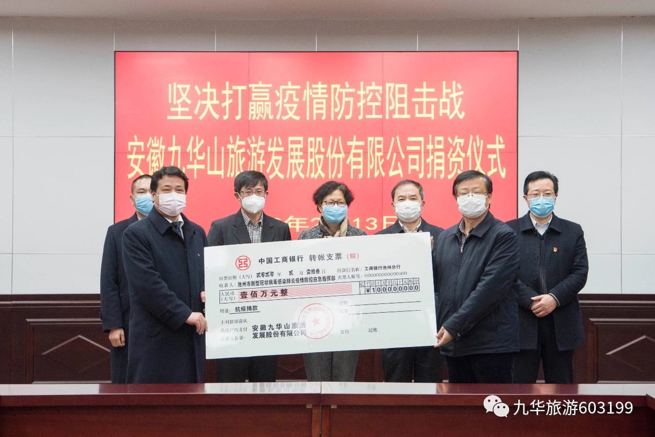 九華旅游彰顯擔(dān)當(dāng) 捐贈150萬抗擊疫情