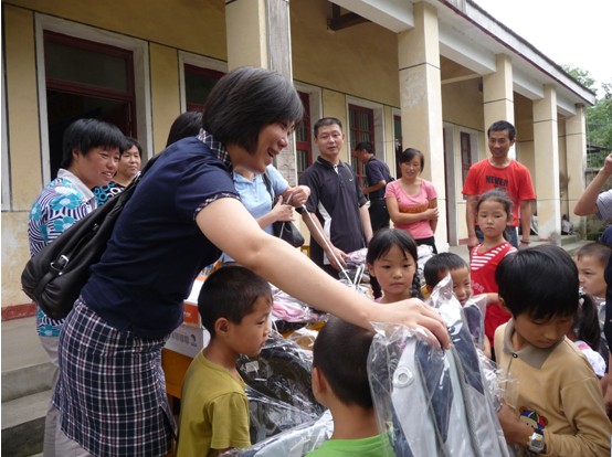 志愿者們把精心挑選的書籍、書包和文具分發(fā)給每位學(xué)生,并將愛心善款交由老師用于資助困難學(xué)生和購置教學(xué)用品。何本英副所長對老師說,今后事務(wù)所愛心團隊會繼續(xù)關(guān)注學(xué)生的成長、幫助學(xué)校解決困難,并鼓勵孩子們好好學(xué)習(xí),天天向上,還特別囑咐家長、老師和學(xué)生上下學(xué)乘船時注意安全。最后,志愿者乘船告別胡灣小學(xué),老師和學(xué)生們揮手道別,依依不舍這短暫而快樂的相處時光。