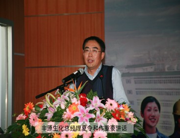 豐原生化總經(jīng)理夏令和在會上做了主題為《深入踐行中糧文化扎實推進班組建設 促進公司持續(xù)提升 全面實現(xiàn)發(fā)展規(guī)劃》的動員講話,對創(chuàng)先爭優(yōu)、企業(yè)文化和班組建設等提出要求。